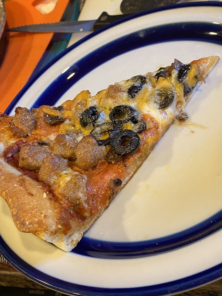 Our Original Crust topped with Traditional Red Sauce, Dairy Free Mozzarella, Premium Pepperoni, Italian Sausage, Sliced Mushrooms, Black Olives