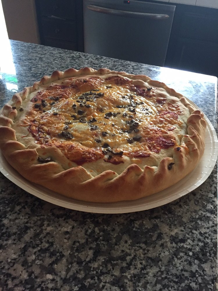Two layers of our Original Crust stuffed with Traditional Red Sauce, Whole-Milk Mozzarella, Canadian Bacon, Premium Pepperoni, Italian Sausage, Crispy Bacon and topped with Traditional Red Sauce, Ground Beef, Mozzarella and Mild Cheddar